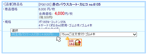 下記の画像のように【同生地パウケース付】のオプションが表示されるものは